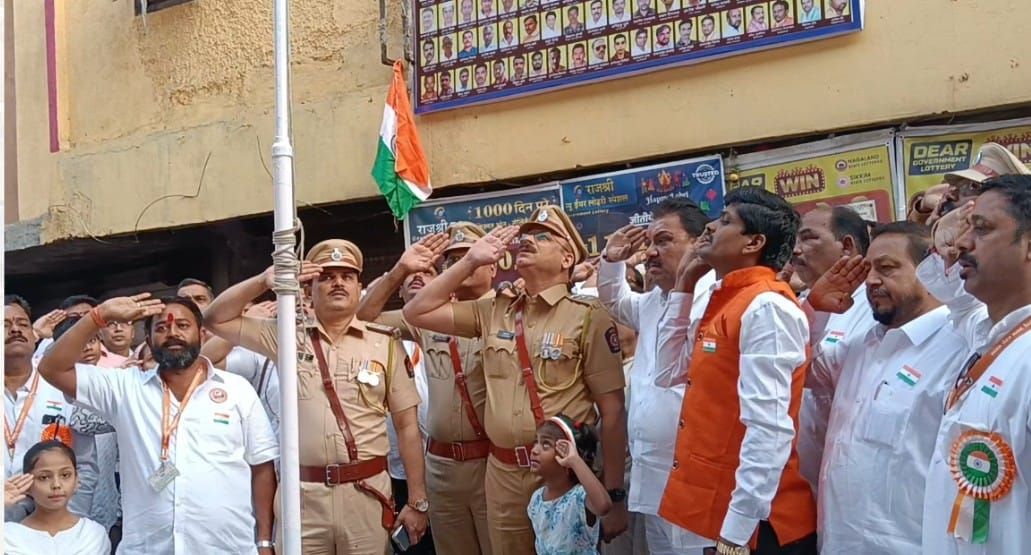 डोंबिवली : पूर्वेतील दत्तनगर चौकात दीडशे फुटी उंच ध्वज फडकवून महापालिका आयुक्‍त अभिनव गोयल यांनी ध्वजवंदन केले.
