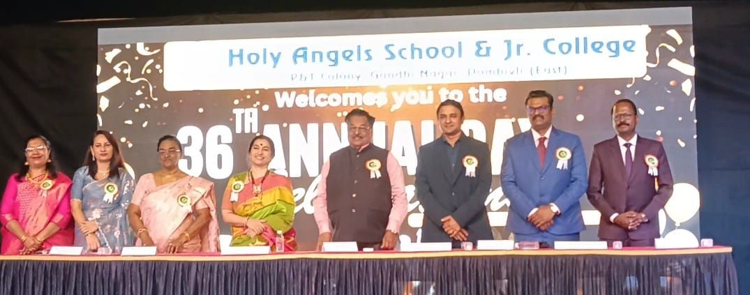 डोंबिवली : पूर्वेकडील पी अँड टी कॉलनी मधील होली एंजल्स शाळा व ज्युनिअर कॉलेजचा छत्तीसावा स्नेहसंमेलन कार्यक्रम रविवारी शाळेच्या भव्य प्रांगणात मोठ्या उत्साहात संपन्न झाला. सदर कार्यक्रमास शाळेचे संचालक डॉ. ओमन डेव्हिड, प्राचार्य बीजॉय ओमन, विश्वस्त लीला ओमन, मुख्याध्यापिका नीतू शर्मा यांच्यासह आमंत्रित प्रमुख पाहुणे मंजुश्री पाटील व शायसन ओसेफ आदी उपस्थित होते.